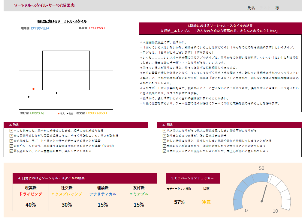 個人が元来もつ言動特性を「本人」に対するサーベイで可視化します。