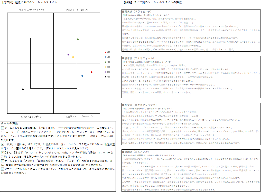 組織員のサーベイ結果を横断的に分析することで、そのチームの特性を可視化します。